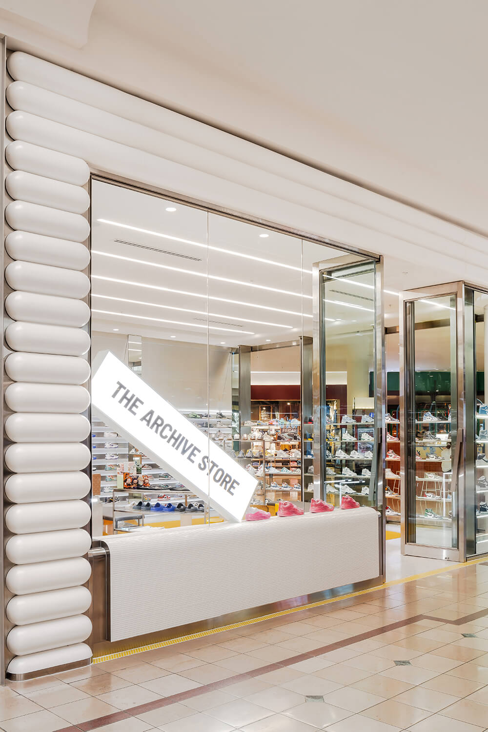 The Archive Store’s first flagship store in Chadstone embodies the brand’s strong sneaker and streetwear cult presence. Decked in high contrast finishes, the interior is designed to evoke the attitude of high-end footwear resulted in an experiential gallery driven by unusual, mesmerizing details. Creating a novel retail experience.